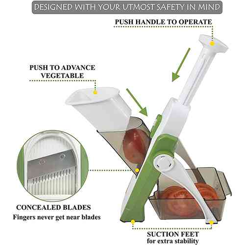 این خرد کن منحصر به فرد شامل تمامی معیار های شما می باشد و بی شک خدمت شما عرض میکنم که این خورد کن بینظیر ترین خردکنی خواهد بود که تجربه استفاده از آن را دارید.ایمن بودن این خردکن یک ویژگی حائز اهمیت است چرا که برای دورنگهداشتن هرچه بیشتر دست های شما از تیغه ها،فنری در بالای آن تعبیه شده است که تنها با فشردن ان میتوانید شروع به خرد کردن کنید.همچنین برای فشردن ادامه چیزی که در حال خرد شدن است،یک محافظ دست نیز برای شما ایجاد شده است.